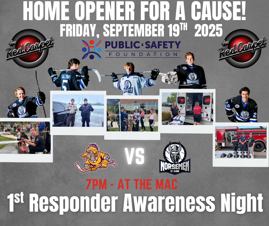 The Norsemen open their season at home against the Minnesota Mallards Friday September 19th. St. Cloud is coming off a season where they narrowly missed the playoffs and hopes are high for the ’25-’26 season. Head Coach Joe Exter, and Assistant Coach Bryce Johnson are back behind the bench for their second season. The Norsemen return 11 players including goaltender Beck Liden who finished the season with 21 wins to go along with a 2.45 GAA and a .907 save %. The Norsemen are recognizing our area First Responders who will receive free tickets compliments of our game sponsor The Red Carpet Night Club. Doors open at 5:30 with emergency vehicles along with Nice Ax Throwing on hand in the parking lot. Puck drop is 7 pm. The first 250 fans through the doors will receive a Norsemen magnet schedule. Five lucky fans will have a shot to win $8000 during the 2nd intermission. Tickets are available at the door or online at tickets.stcloudnorsemen.com or click on the tickets tab.