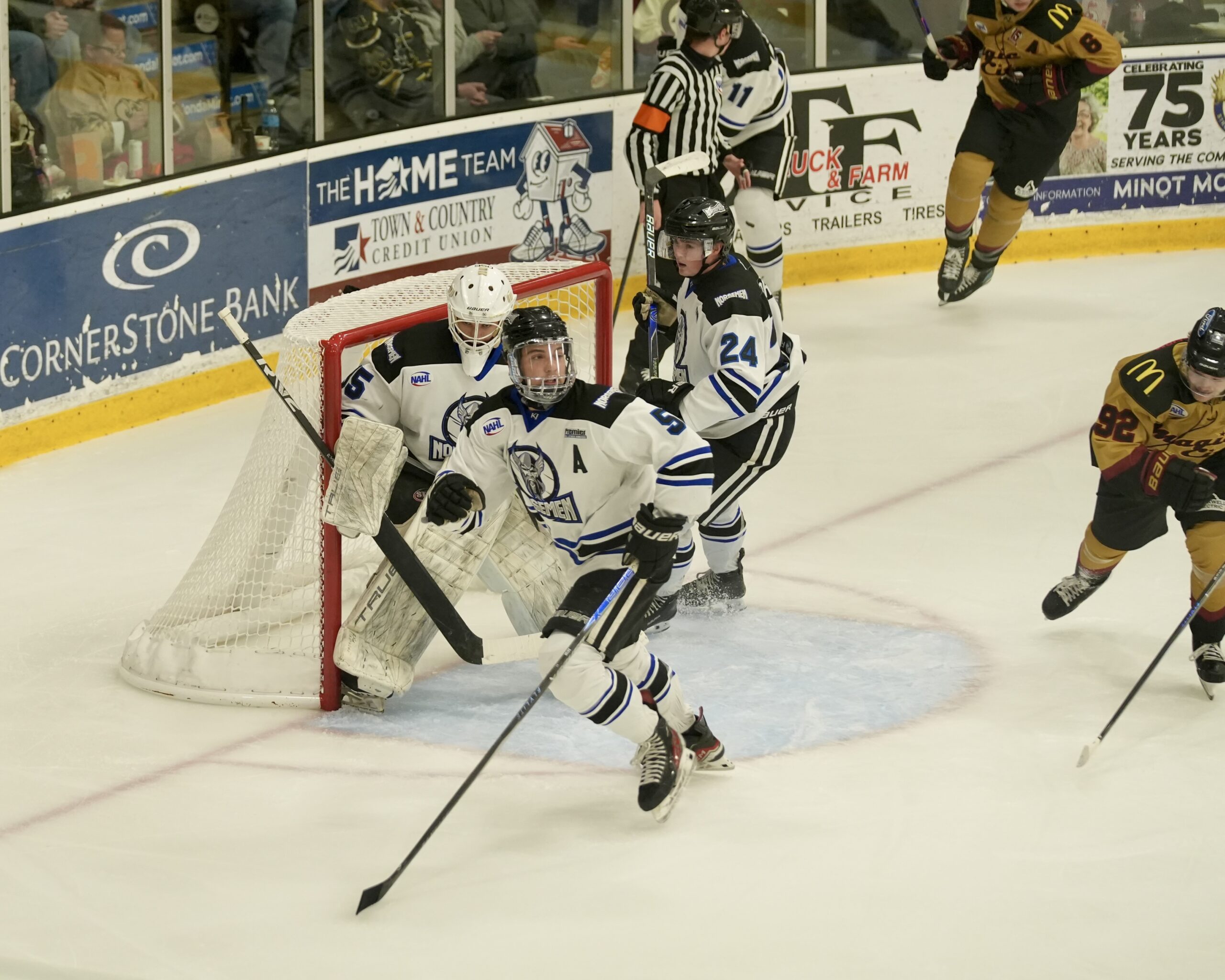 Saturday night the Norsemen found themselves trailing 1-0 again in the first when Tanner Hunt scored a late shorthanded goal to tie it up after a period. Gabriel Bugeaud gave the Norsemen a 2-1 lead early in the 2nd period off assists from Tommy Enrietto and Tyler Geyer. Minot scored three in a row building a 4-2 lead midway through the 3rd period before Wyat Farrell pulled the Norsemen within a goal with his 3rd of the season. Cristian Nichols and Vinny Hart picked up the assists, but Minot answered quickly to regain a two-goal lead. Avry Shaw scored with 0:49 seconds left giving the Norsemen a shot in the final minute, but the late equalizer again evaded them as Minot prevailed with the 5-4 victory.